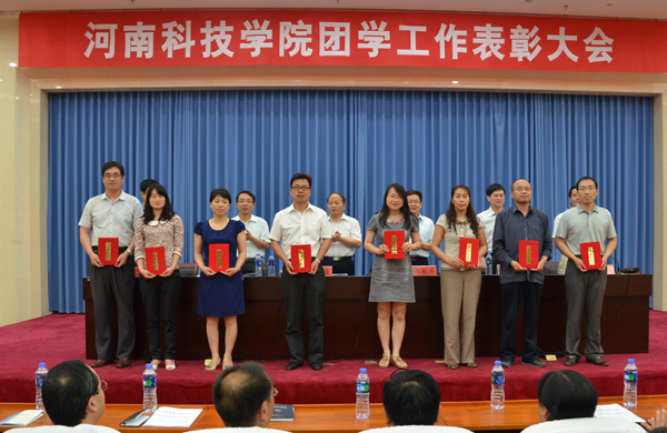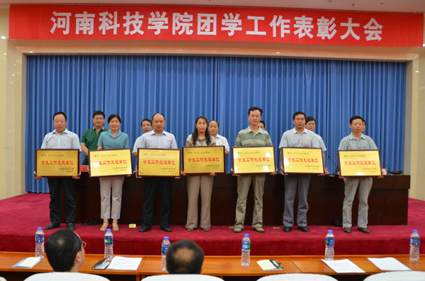 副校长窦玉玺结合我校的学生工作发表讲话。他代表校党委、校行政对受到表彰的先进集体和个人表示了热烈祝贺,对2012年团学工作进行了回顾,并对我校团学队伍勤奋工作、勇于创新,保证教育教学的有序进行,维护校园和谐稳定所取得的成绩给予了充分肯定。他说,2012年,在全校各级团学组织和广大团学干部扎实工作和积极努力下,我校团学工作成绩显著,先后荣获“河南省普通高等教育本专科学生管理工作先进集体”、“全省高校学生资助工作考核优秀单位”、“河南省‘五四’红旗团委”、第十届“挑战杯”河南省大学生创业计划竞赛优秀组织奖、“河南省普通大中专毕业生就业工作先进集体”、“河南最具就业竞争力示范院校”等荣誉。