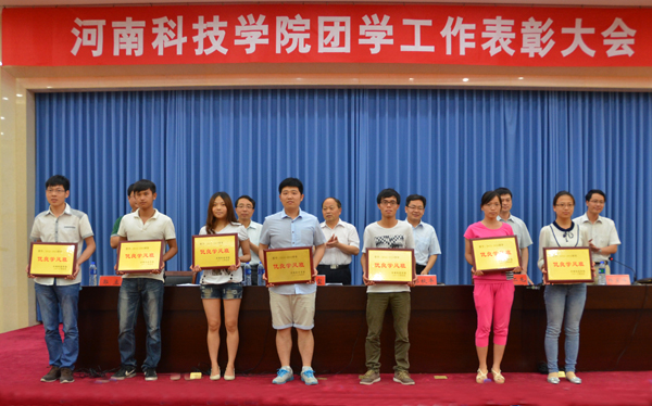 会议首先宣读了校党委、校行政《关于表彰2012年度学生工作先进单位和个人的决定》、《关于表彰2012—2013学年“优良学风班”、“三好学生”等先进集体和先进个人的决定》、《关于表彰2012年度“五四”红旗团委、模范团干部等先进集体和先进个人的表彰决定》以及《关于表彰2011-2012学年本科毕业生就业工作先进单位的决定》。在欢快的乐曲和热烈的掌声中,2012年团学工作中表现突出、受到表彰的先进集体和个人代表依次上台领奖。