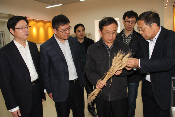 报告会后,贾敬敦主任一行在副校长刘兴友的陪同下,参观了我校科研平台、重点实验室、小麦育种中心,对我校优良的科研条件和实验设施表示赞许。随后,贾敬敦主任一行又专程来到位于新乡县朗公庙乡的我校小麦育种科研基地,参观了小麦根系走廊、“农业部百农矮抗58小麦高产创建万亩示范田”以及“全国农技推广农业科技试验示范基地”,认真了解了我校小麦育种研究的历史、目前研究的进展及未来规划情况。贾敬敦主任希望我校小麦育种工作要加强基础理论研究,育出更多更好的品种,为保障国家粮食安全再建新功。