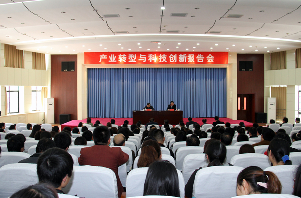 4月25日下午,贾敬敦主任在办公楼多功能报告厅为我校师生作了题为“产业转型与科技创新”报告会。校党委书记牛书成主持报告会。