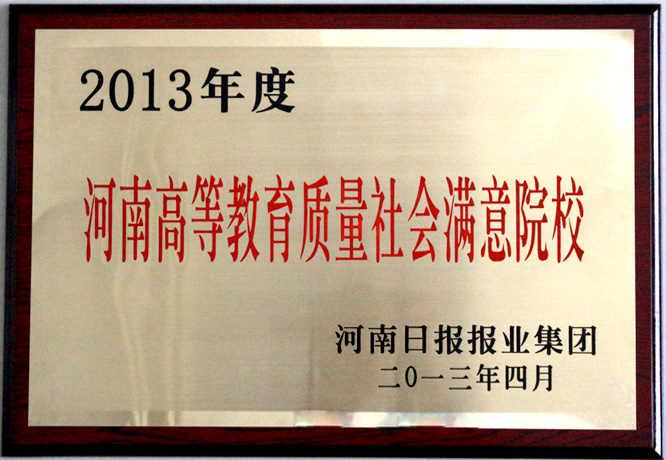 4月26日,在河南日报报业集团举办的“第四届河南高等教育高峰论坛”上,“2013年度河南高等教育质量社会满意院校”调查评选活动结果隆重揭晓,我校被评为“2013年度河南高等教育质量社会满意院校”。