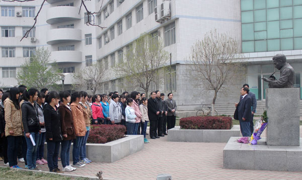4月4日,生命科技学院党政领导、校小麦中心科研团队及部分教师和学生代表来到育种家黄光正教授的雕像前,举行了“缅怀先烈 继承传统 传承精神”主题纪念活动。大家表示,一定要继承黄光正教授严谨的治学态度和为小麦育种科研事业的献身精神,为教学研究型大学建设和中原经济区建设贡献自己的一份力量。