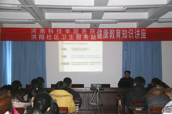 在校团委会议室,“结核病防治知识”和“行动起来,向‘零’艾滋迈进”的传染病知识讲座也在同时进行,新乡市红旗区疾病控制中心和新乡市结核病防治所负责人就艾滋病、结核病的危害、传播途径及防护措施向大家做了详细的讲解。