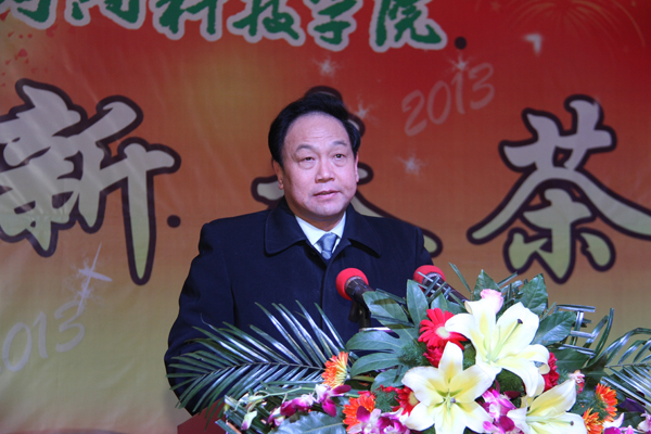校党委书记牛书成致新春贺词。他首先代表校党委、校行政向全校师生员工致以新春节日的问候和祝福。牛书成指出,一年来,全校师生员工同心协力、攻坚克难,学校各项事业全面推进,都取得了显著成绩:一是教育教学质量有了新提高;二是师资队伍建设取得新进展;三是科学研究取得新突破;四是重点学科建设实现新跨越;五是招生就业工作取得新成绩;六是对外合作交流走上新台阶;七是后勤保障能力有了新提升;八是保民生促和谐取得新成效;九是党建和思想政治工作展现新局面。