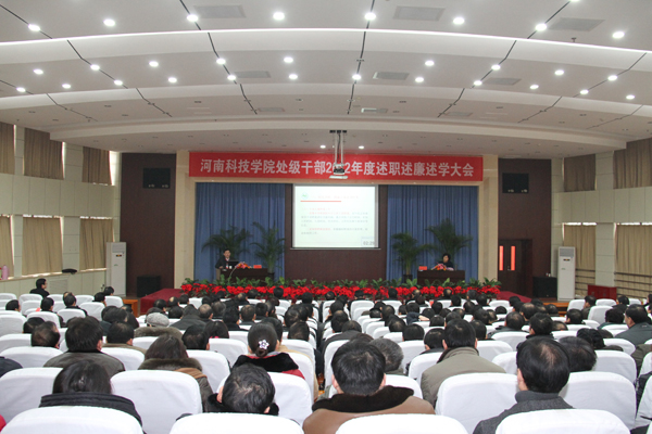 1月7日,我校在行政楼三楼报告厅召开2012年度处级干部年度述职述廉述学大会。校领导牛书成、王清连、张玉珍、王文鹏、刘兴友、窦玉玺、冯启高、王舜书、苗双虎、宋亚伟等出席会议,全体处级干部参加了会议。会议由校党委副书记、工会主席张玉珍同志主持。