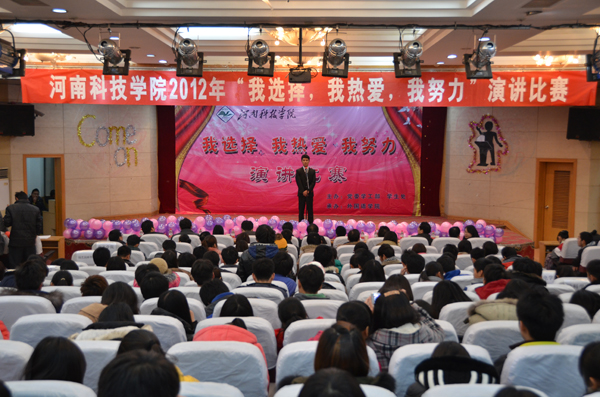 为加强对学生的专业思想教育,坚定他们对各自专业进行探索研究的信念,引导他们以更加饱满的热情投入到学习生活中,12月19日晚,由党委学工部、学生处主办,外国语学院承办的2012 “我选择 我热爱 我努力”演讲比赛在图教201举行。学生处、校团委等相关单位负责人,各学院党委副书记、辅导员和学生代表300余人观看了比赛。