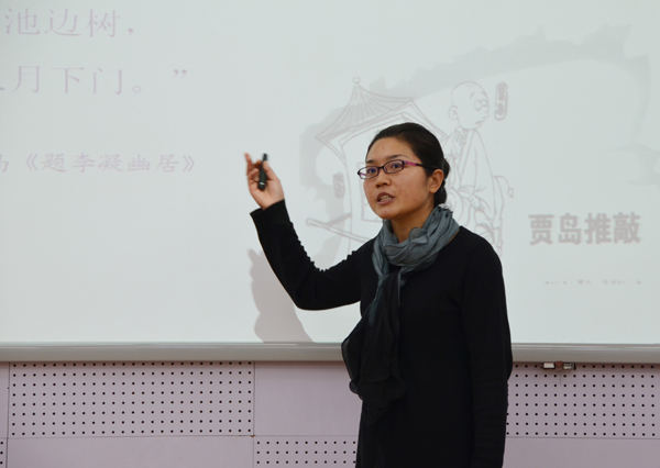 一等奖获得者人文学院教师沈恒娟参赛场景