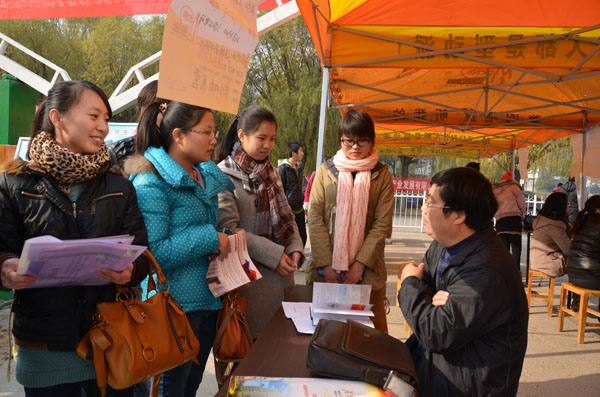11月24日,我校2013届毕业生第二场就业“双选会”在西区操场举行。此次双选会主要由机电学院、化学化工学院、人文学院、外国语学院、数学科学学院、体育学院分模块分专业举办。