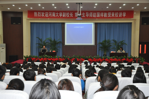 11月20日上午,应“人文讲坛”邀请,河南大学常务副校长、博士生导师赵国祥教授为我校师生做了题为“心理素质与成才”的报告。人文学院等学院300余名师生聆听了报告。