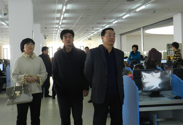 11月12日,副校长王文鹏在教务处、外国语学院、图书馆等相关单位负责人的陪同下到外国语学院自主学习中心视察建设情况。