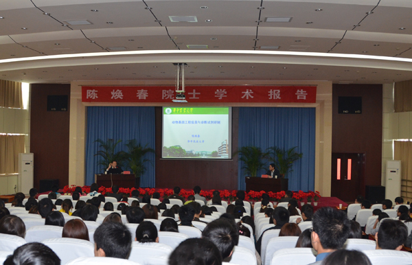 10月27日,中国工程院院士、华中农业大学博士生导师、我校“双聘”院士陈焕春教授为我校师生作了题为“动物基因工程疫苗与诊断试剂研制”的学术报告。