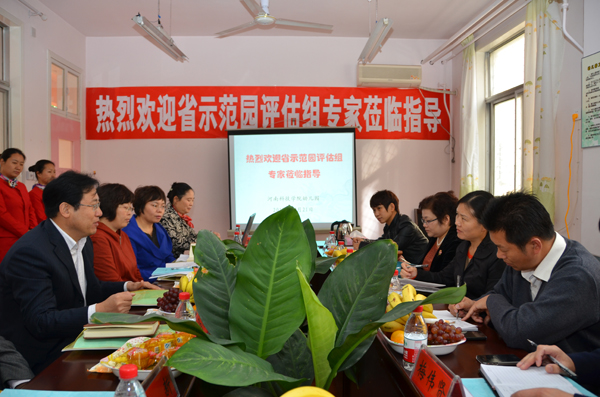 评估汇报会上,幼儿园园长李公英从园舍环境,办学条件,师资力量,教研成果等方面向考核小组进行了自评汇报。听取报告后,考核小组依据《河南省省级幼儿园标准》,通过实地察看、查阅档案、家长问卷、教师问卷、进班听课等形式,对我校幼儿园进行全方位的检查评估。最后,考核小组对本次评估考核的情况进行了综合反馈,对我校幼儿园的办园理念和办园水平给予了高度评价,并提出了更高的要求。