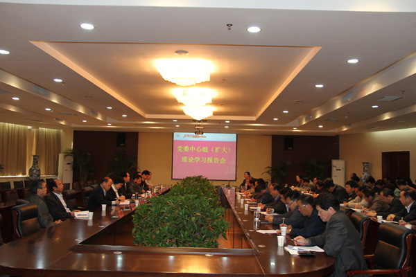 10月24日上午,校党委中心组(扩大)理论学习报告会在行政楼206会议室举行。教育科学研究所副所长宋飞琼博士应邀作题为《高校管理制度设计:理论与案例分析》的理论报告。校领导牛书成、王清连、张玉珍、王文鹏、窦玉玺、冯启高、王舜书、苗双虎、宋亚伟出席会议,全体正处级领导干部参加了学习会。