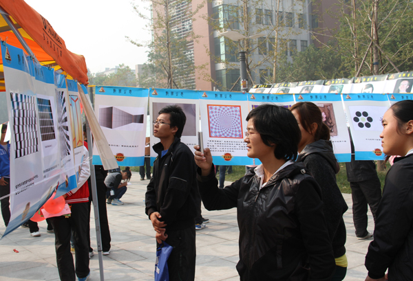 随后,广大同学在现场积极参与“数学猜谜”、“趣题妙解”、“智力棋盘”、“水中投针”、“拼二十四”、“空中棋塔”、“渡河问题”等多个丰富多彩的数学游艺活动。