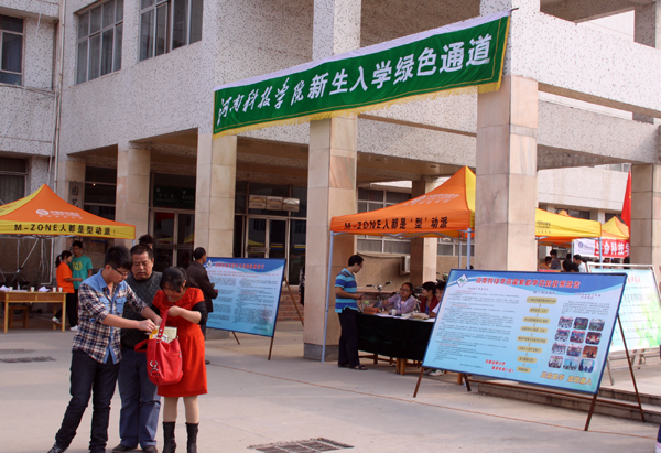为帮助新生顺利到达学校,学校在火车站设置了迎新接待点,为初到的新生们送上第一时间的关怀。在火车站中心广场,“河南科技学院新生接待处”的条幅格外醒目,凉棚里早已准备好了茶水、板凳、桌椅等服务设施,志愿者们帮助新生搬运行李,把他们及时送上前来接待的校车。