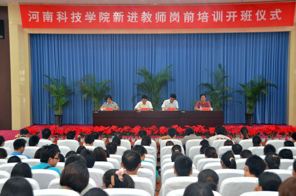 为提高新进教师教育教学技能,帮助他们尽快适应学校的工作和生活,根据学校工作安排,8月22日至24日,人事处组织2011年、2012年新进教师进行了岗前集中培训。22日上午,岗前培训班开班仪式在行政楼三楼报告厅举行,教务处、人事处等相关负责人及新进教师共130余人参加开班仪式。