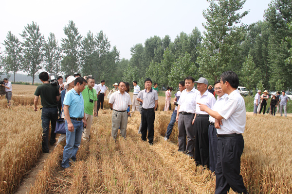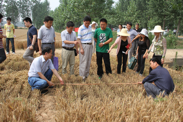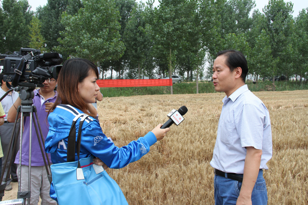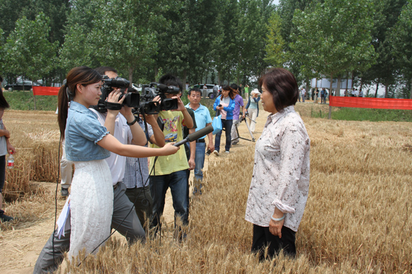 6月7日,媒体记者们来到长垣县常村镇“百农矮抗58”万亩示范方,对“百农矮抗58”实打验收现场进行了观摩采访。并对验收专家组成员河南省农业厅、总农艺师王军茂、省种子管理站站长毛景英、河南农业大学马新明教授、河南师范大学李春喜教授、河南科技学院杨永光教授及部分农户进行了采访。随后,记者们还到滑县“百农矮抗58”高产示范田、我校小麦育种基地根系走廊、小麦人工气候室、智能温室等进行了参观。