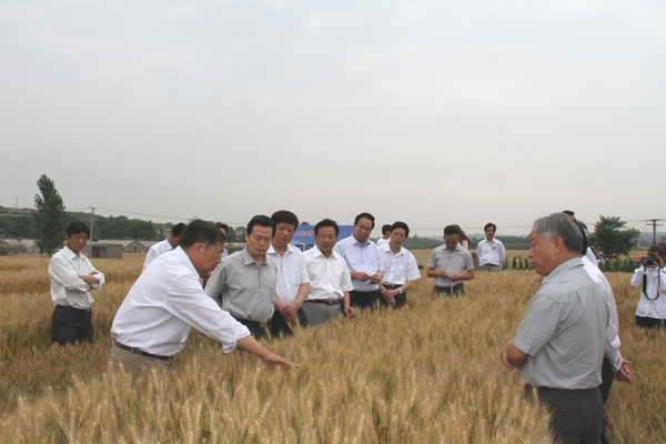 河南省科技厅厅长贾跃、副厅长张代民、农业部小麦专家指导组副组长郭天财等一行5人在我校党委书记牛书成、校长王清连、副校长刘兴友的陪同下莅临我校位于济源市的杂交小麦基地视察指导工作。省科技厅农村科技处处长徐公民、副调研员刘晓永,我校校办、科技处、小麦研究中心及济源市科技局、农业局等部门负责同志随同考察。