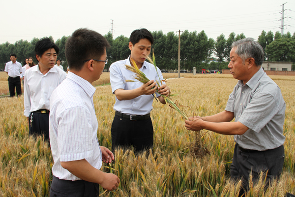 省科技厅领导先后视察了杂交小麦基地200亩杂交小麦制种田,国家“863”、“973”计划、河南省重大科技专项“杂交小麦”展示基地。我校小麦中心主任茹振钢就BNS杂交小麦的品种特性、研究进展及研究规划情况进行了详细介绍。在杂交小麦展示基地,领导和专家对杂交小麦的长势长相非常看好,农业部小麦专家指导组副组长郭天财现场对杂交小麦进行了初步测产。