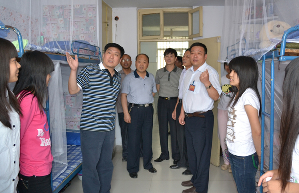省教育厅发展规划处调研员董玉民一行在学生宿舍参观考察