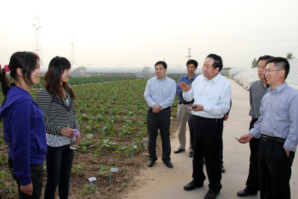 考察结束后,牛书成书记与生命科技学院负责同志及小麦中心部分科研人员进行了座谈。牛书记对生命科技学院在小麦、棉花、玉米等作物良种培育领域取得的成绩以及为我校发展所做出的贡献表示高度赞赏。他说,中原经济区建设规划中提出,要持续探索工业化、城镇化和农业现代化“三化”协调发展的新路子,农业现代化的关键之一在于良种的培育。“三化”协调发展的目标任务,与我校的学科专业体系、人才培养目标、科学研究方向十分吻合,我校发展的舞台会更大、机遇会更多,特别是小麦育种团队将更有用武之地。牛书记希望小麦育种团队继续发扬自立自强、求是创新的校风和艰苦奋斗、自强不息的学校精神,培育出河南省第一、全国第一的新品种,为中原经济区建设做出更大的贡献。