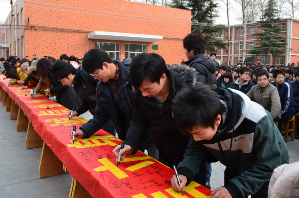会后,高职学院举行了“诚信立身 诚信处事 诚信执教 诚信服务 诚信学习 诚信待人”签名活动。