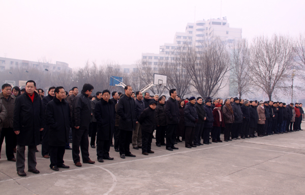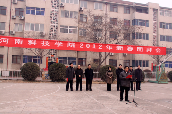 玉兔辞旧岁,蛟龙迎新年。1月23日(农历大年初一),在喜庆的鞭炮声中,我校2012年新春团拜会在西区篮球场举行。校党政领导牛书成、王清连、张玉珍、窦玉玺、冯启高,原正校级调研员梁赖、张民校、郭海山出席团拜会,与教职工们一一握手,互致节日问候、共贺新春佳节。