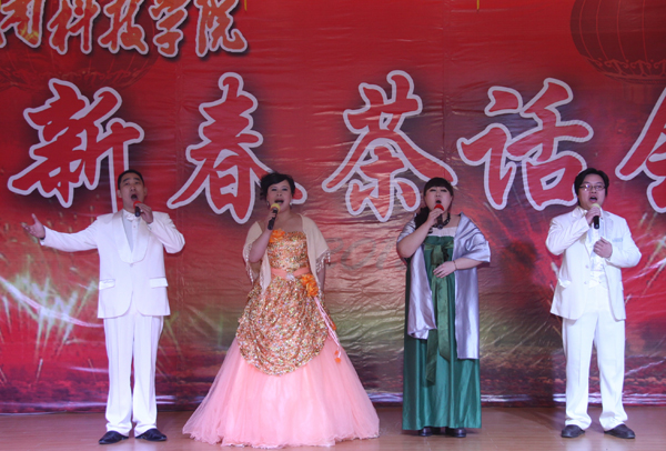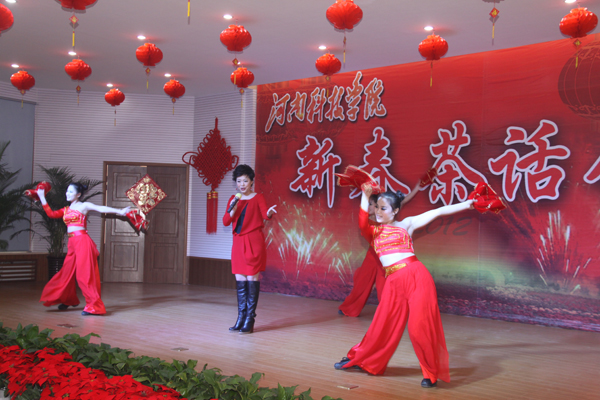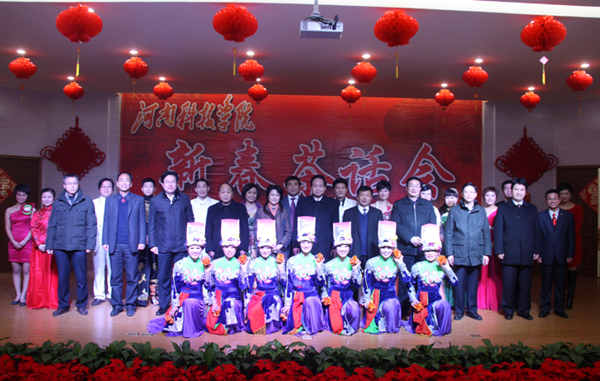 金龙闹新春,欢歌唱盛世。在2012年新春佳节即将来临之际,1月8日下午,我校在教职工活动中心隆重举行了新春茶话会。全体校党政领导出席茶话会,各单位党政负责人,河南省优秀专家、国家级项目负责人、省级成果奖主持人的教师代表,民主党派、无党派人士代表,离退休职工代表,工人代表等参加了茶话会。