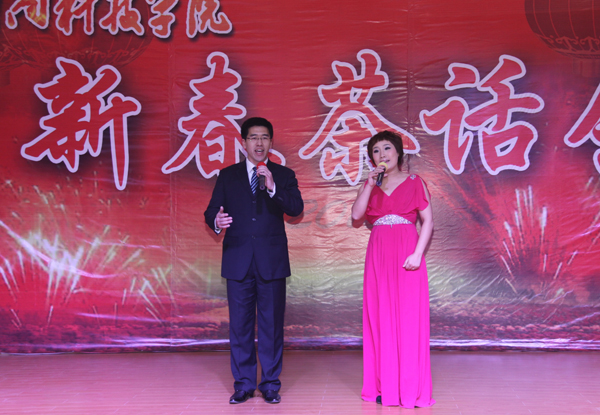 校党委书记牛书成致新春贺词。牛书成书记首先代表校党委、校行政向全校师生员工致以新春节日的问候和祝福。牛书记指出,一年来,在全校师生员工同心协力、锐意进取、真抓实干下,我校各项事业都取得了显著的成绩:一是教育教学质量稳步提升;二是师资队伍建设取得新的发展;三是科学研究取得新突破;四是学科专业建设取得新进展;五是招生就业工作成绩喜人;六是开放办学取得新进展;七是后勤保障能力不断增强;八是更加关注民生,促进公平和谐;九是党建和思想政治工作取得新成效。