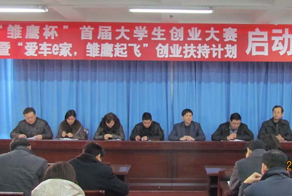 12月16日,我校“雏鹰杯”首届大学生创业大赛和“爱车e家,雏鹰起飞”大学生创业扶持计划启动仪式在校团委会议室举行。招生就业处、教务处、科技处、学生处、校团委以及各院系相关负责人和新乡市天行健汽车服务有限公司副总经理出席了会议。