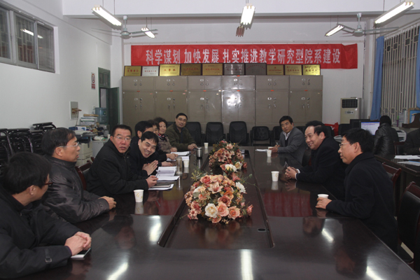 牛书成同志走访的最后一个单位是新科学院。当时天色已晚,校园华灯初放,牛书记仍然兴致勃勃地与新科学院全体班子成员共同探讨新科学院的发展大计。牛书记指出,创办新科学院,是学校抢抓历史机遇、拓展发展空间的重要举措,经济效益和社会效益都非常大,为学校的建设和发展做出了突出贡献。面对下一阶段的任务,要按照国家教育部和省教育厅的要求,加强与投资方的合作,切实做好新科学院征地和建设工作,进一步在提高教育教学质量、促进学风建设和开展干部培训等方面做更多更细的工作,促进新科学院更快速、更规范、更健康地向前发展。