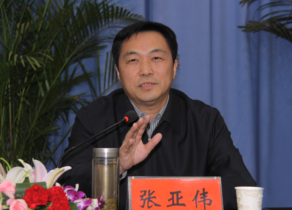 省委高校工委副书记张亚伟讲话。他希望调整到新岗位的领导同志要具有强烈的责任感和事业心,推动工作更上一个台阶。他希望学校认真落实九次党代会的精神,认真学习领会卢展工书记近日在高校调研时的重要讲话精神,按照“四个高地”、“四个驱动”的要求,主动地融入中原经济区的建设,发挥学校科技创新的优势,为中原经济区建设做出更大的贡献.。