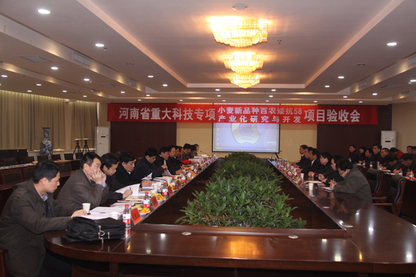 会上,专家组认真听取了该项目实施情况的汇报,并审阅了相关材料。经过质询讨论,专家组成员一致认为,百农矮抗58不但高产、而且抗性和品质好,是一个综合农艺性状指标稳定的高产综抗中筋小麦品种,项目实施以来,科研成果丰硕、产业化开发成效显著、项目财务管理规范,全面完成了任务合同书规定的各项计划任务,通过验收。