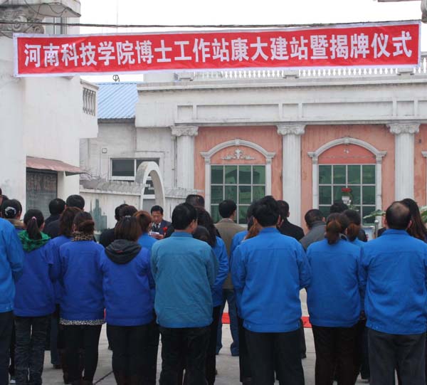 日前,“河南科技学院兽药开发与疫病防控博士工作站”在新乡市康大消毒剂有限公司挂牌,标志着我校动科学院与康大消毒剂有限公司在科研开发方面的校企合作进入了实质性的阶段。研究生处、科技处、动科学院相关负责人及新乡市科技局、畜牧局相关领导等人员参加了揭牌仪式。