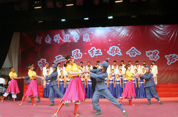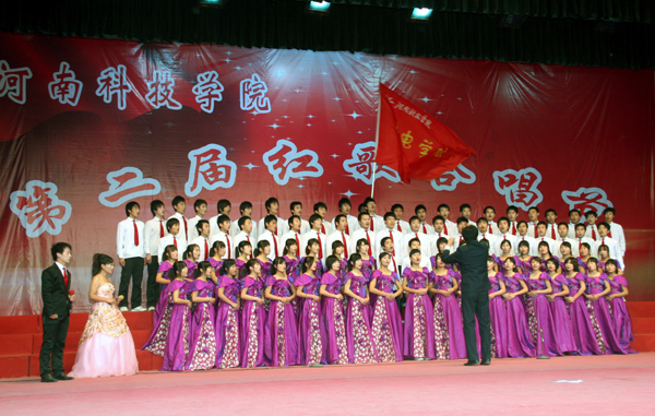 为进一步加强爱国教育,活跃校园文化生活,展现当代青年大学生永远跟党走的精神风貌,11月12日下午,由党委宣传部、学工部、校团委联合举办的第二届红歌合唱节在西操场隆重举行,学校相关职能部门,各院系主要负责人以及师生代表万余人观看了比赛。