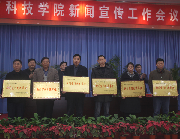 会上,党委学工部部长、学生处处长何雅璞宣读了《关于表彰2010—2011年度校新闻宣传工作先进单位优秀通讯员、优秀编辑、优秀播音员、优秀国旗手的决定》。郭海波副书记和相关职能部门负责人向新闻宣传工作先进单位和个人颁奖。