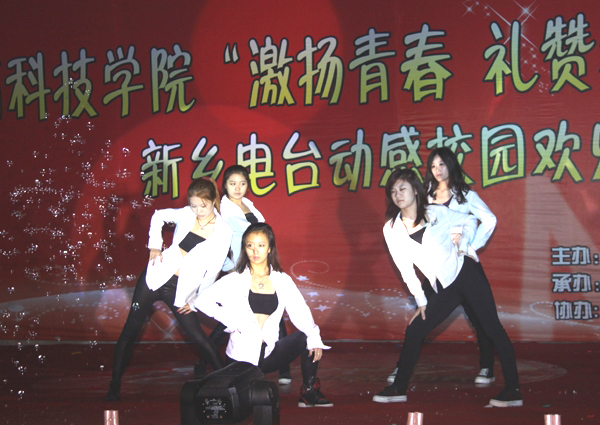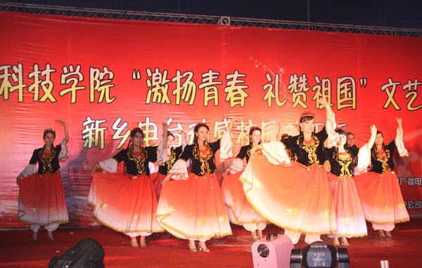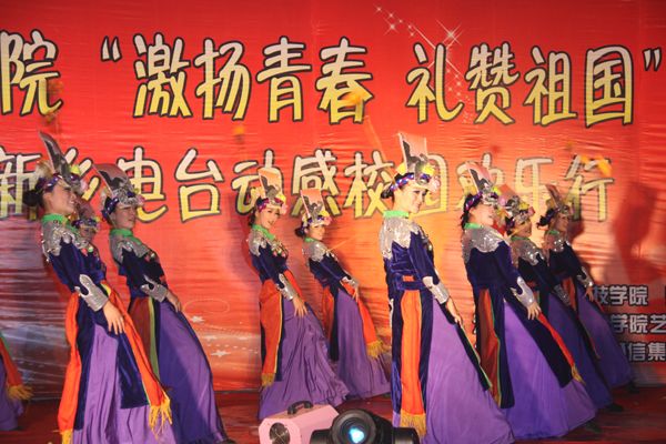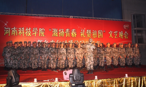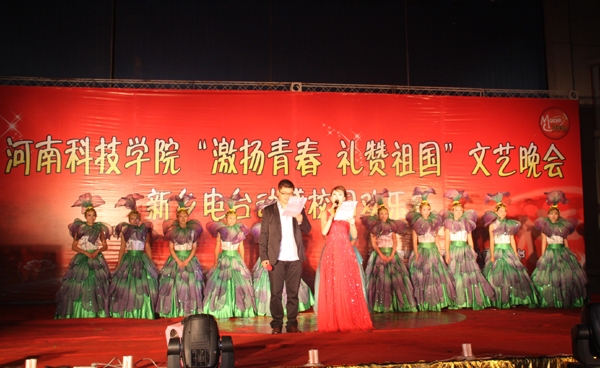 在共和国62华诞来临之际,9月29日晚,由我校和新乡广播电台主办,我校艺术学院承办的“激扬青春,礼赞祖国”迎新联谊晚会在西操场隆重举行。校党委副书记郭海波、副校长王文鹏、副校长冯启高、校纪委书记宋亚伟,新乡广播电台台长郎东升、新乡广播电台台长助理王小朋等与近9000名新生一同观看了演出。