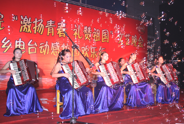 跳跃的十指,在手风琴上跳出了流动的音符,器乐表演手风琴双重奏为同学们又带来了一场听觉盛宴,让观众在激扬的旋律中体会到了西方乐器的独到之处。一曲《感谢你》感染了在场的所有人。