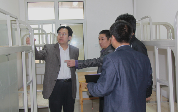冯启高副校长一行先后查看了新竣工的学生宿舍楼和各学生公寓新生宿舍。所到之处,冯启高副校长仔细查看了新生宿舍防盗门的更换情况、宿舍内外墙的粉刷情况及宿舍内水电、床铺、卫生间、地面的卫生情况,并就发现的问题提出了整改意见。