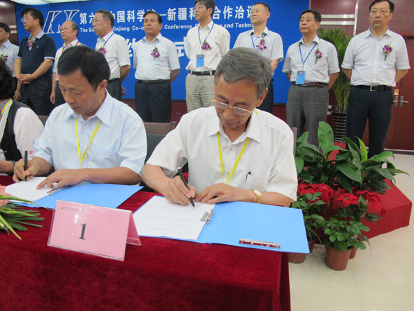 为落实党中央、国务院新疆工作座谈会会议精神,促进新疆科技和经济社会发展,8月24日,第六届中国科学院—新疆科技合作洽谈会在新疆昌吉国家高新技术产业开发区隆重举行,自治区党委副书记、自治区主席努尔·白克力,中国科学院党组成员、副院长施尔畏出席会议。我校校长王清连教授应邀参加并出席科技合作签字仪式。校长办公室主任郭秋平博士陪同参加了洽谈会。