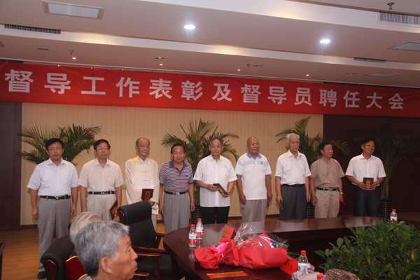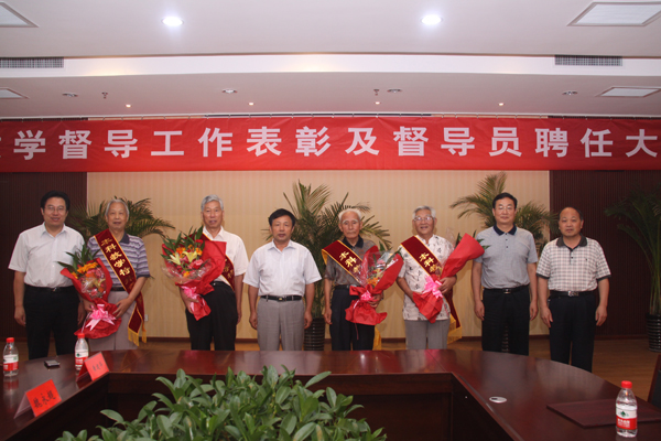 会上表彰了多年来辛勤工作在教学督导一线,深入开展督教、督学、督管工作,为稳定学校教学秩序,规范教学管理,提高教学质量做出了突出贡献的朱明哲、杨永光、杨怀森、甘贤友等4名同志。副校长冯启高宣读了《河南科技学院关于授予朱明哲等四位同志本科教学工作特殊贡献奖的通知》。校领导为获得本科教学工作特殊贡献奖的四位督导专家颁发荣誉证书和鲜花。同时聘任朱寿龄、侯运启、周国顺、田龙宾、卢宪斋、魏永超、黄建华、任长见等八位同志为新一届教育教学督导员,校长王清连为新一届校教育教学督导员颁发聘书。