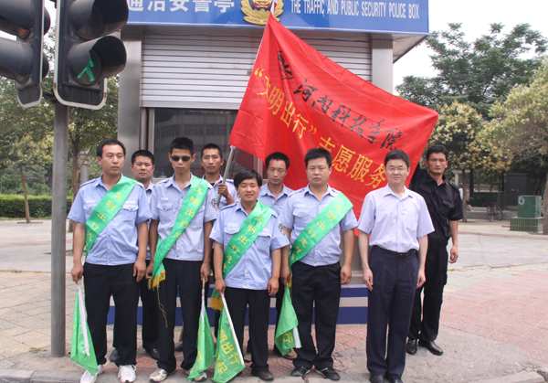 自接到新乡市创建文明城市指挥部通知后,学校领导高度重视,召开专门会议,布署安排“文明出行志愿者”执勤事宜,成立了河南科技学院“文明出行志愿者”服务队,并指派保卫处副处长宫海军担任领队。