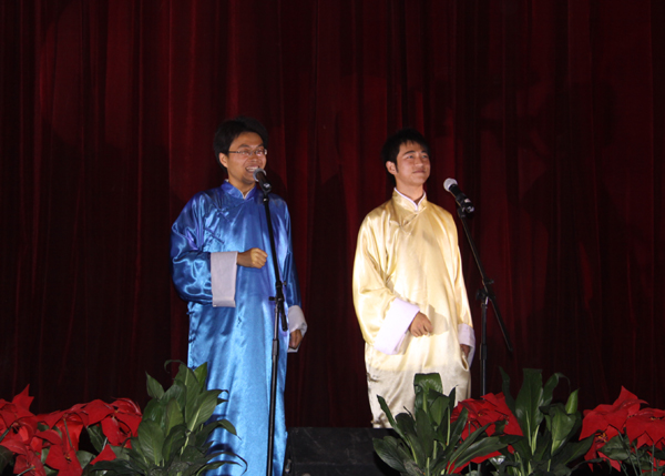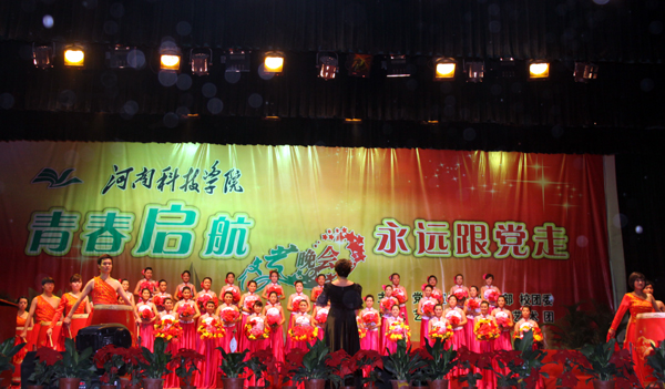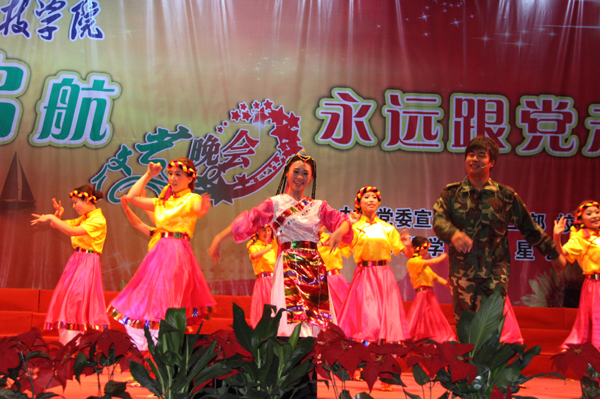 晚会在一曲高亢激昂的《我的祖国》中拉开了帷幕。豪迈奔放歌唱深情地表达出广大师生对党、对祖国的无限热爱之情,尽情地诠释了毕业生火热的青春和紧跟党走的决心。歌伴舞《我们就是中国》气势磅礴,激励着我们要在追随祖国前进的脚步中奋发图强、勇往直前。合唱《编花篮小景》,舞蹈《鸽子花开的时候》、《秀色》,以及川剧变脸和戏曲联唱等精彩演出,热情赞颂了中国共产党建党90年来取得的辉煌成就,充分展示了我校学子昂扬向上的精神风貌。