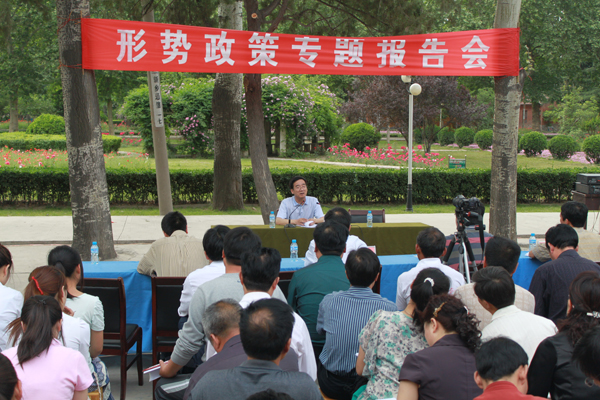 5月19日,校党委副书记郭海波在校团委书记郭立及工作人员的陪同下,应邀到高职学院作“形势政策专题报告”。报告会在学院文化广场举行,学院师生1300余人聆听了报告。报告会由高职学院党委书记巴新华主持。