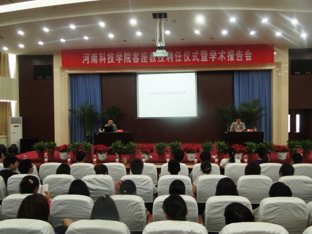 5月19日下午,中国期货与金融衍生品研究中心硕士生导师、金鹏期货经纪有限公司副总经理、郑州金鹏期货分公司总经理刘文永研究员受聘我校客座教授仪式及学术报告会在行政楼三楼报告厅举行,经济与管理学院300余名师生听取了报告,王文鹏副校长出席并颁发聘书,报告会由经济与管理学院院长史保金教授主持。