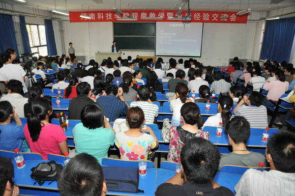 5月19日下午,全校观摩教学暨教学经验交流会在3号教学楼合一教室进行。共有15个院(系、部)300余名教师和学生参加本次活动。交流会由教育教学督导办公室主任、教务处副处长傅宇主持。
