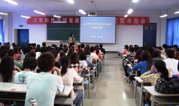 薛玉莲教授以“会计学专业学生的知识结构与职业前景”为题,通过对会计教育的目标及培养体系、职业发展需特别重视的课程及知识、会计专业学生应具备的知识结构、我国的会计改革与会计教育发展和会计学专业学生的职业前景等方面的分析与讲解,对会计学专业的学科发展前景进行了描述和预测,增加了师生对会计学专业发展方向的了解,明确了会计学专业学生的就业前景。报告会会场气氛热烈,师生深受感染,普遍反映报告使自己对职业前景有了更加清晰的认识,努力方向更加明确。