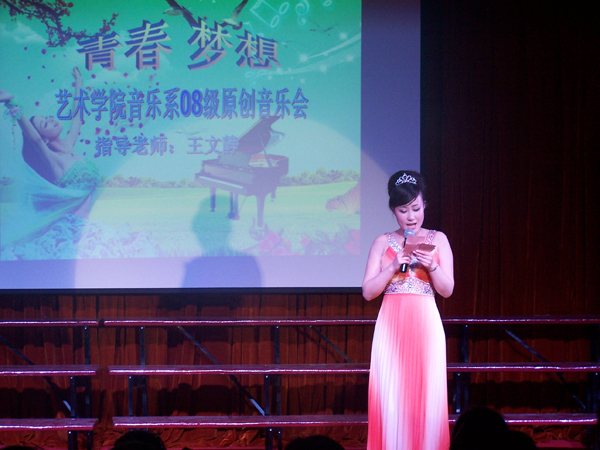 近日由艺术学院主办,音乐系08级学生承办的“青春·梦想”原创音乐演唱会在音乐排练厅隆重举行。艺术学院领导与师生观看了演唱会。