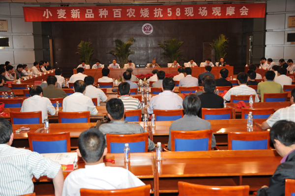 观摩现场,百农矮抗58小麦长势喜人,丰收在望。中国工程院院士、著名小麦育种专家程顺和评价说:“百农矮抗58具有很好的丰产性和广泛的适应性,从百农矮抗58表现出的优良性状看,这个品种是近年来我国小麦品种改良上的一个重要进展。”其他专家也一致认为:百农矮抗58历经大风大雨、冬季干旱、低温等多种不良气象因素的考验,已成为政府放心、企业欢迎、百姓受益的新品种,为河南粮食核心区建设和国家粮食安全做出了重要贡献。