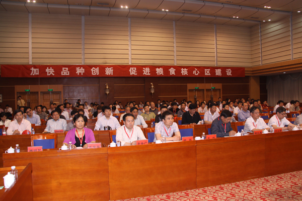 农业厅朱孟洲厅长在讲话中肯定了百农矮抗58在河南粮食生产上作出的巨大贡献,他恳请与会的院士、专家多指导河南省的农业生产工作,并相信会议将为进一步加快以百农矮抗58为代表的优良品种的推广应用步伐,为全省粮食丰产发挥促进作用。